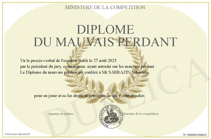 Envoyez par email votre Diplôme du mauvais perdant personalisé