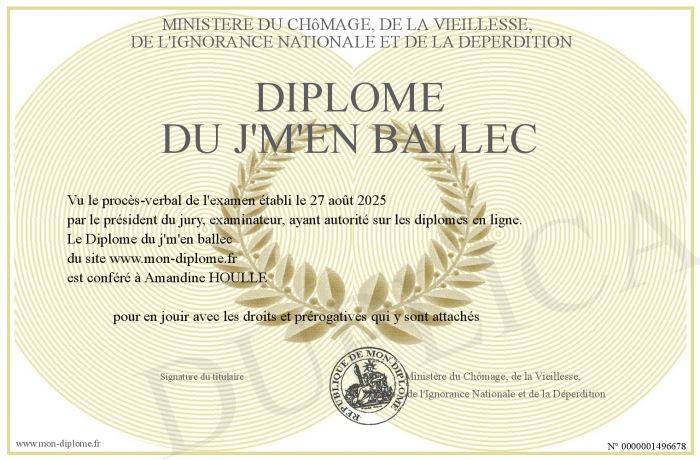 Envoyez par email votre Diplôme du j'm'en ballec personalisé