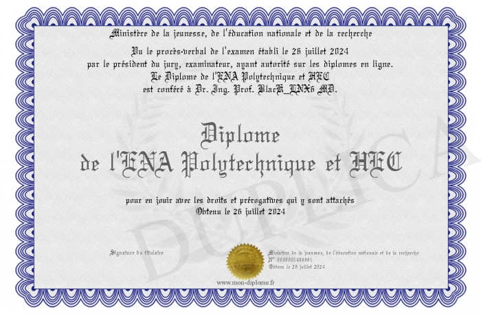 Envoyez par email votre Diplôme de l'ENA Polytechnique et HEC personalisé