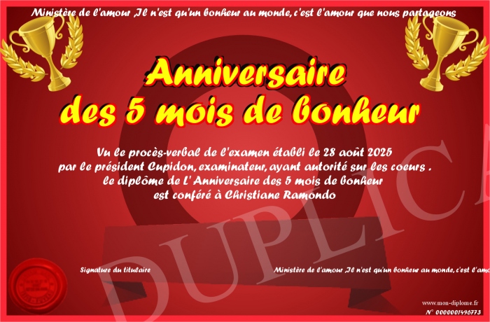 Envoyez par email votre Anniversaire des 5 mois de bonheur personalisé