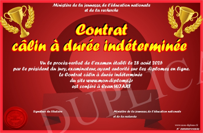 Envoyez par email votre Contrat câlin à durée indéterminée personalisé