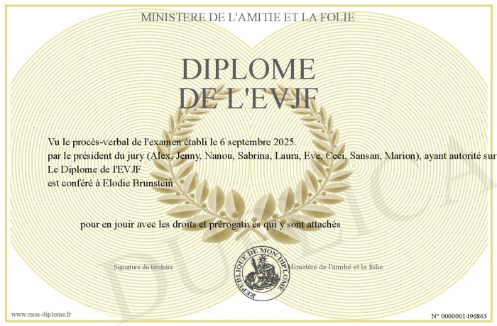 Envoyez par email votre Diplôme de l'EVJF personalisé