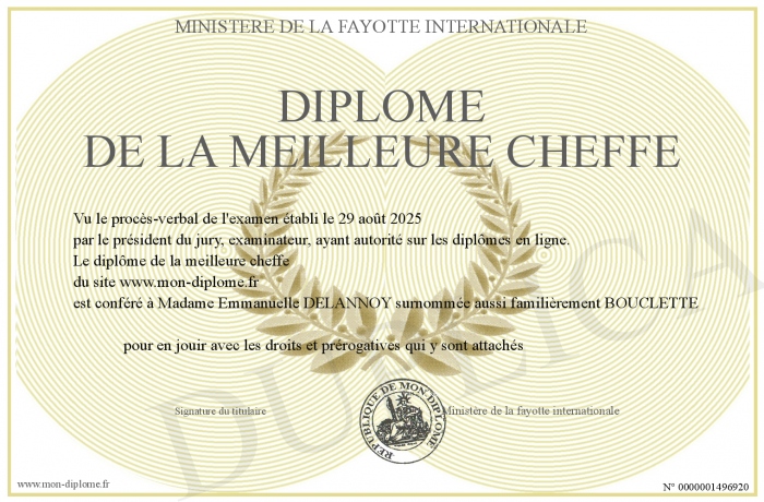 Envoyez par email votre Diplôme de la MEILLEURE CHEFFE personalisé