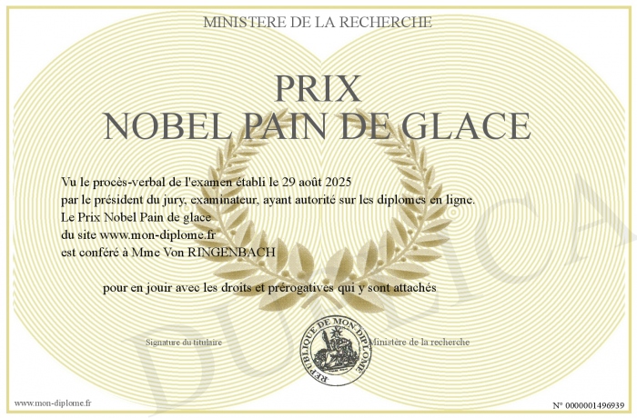 Envoyez par email votre Prix Nobel Pain de glace personalisé