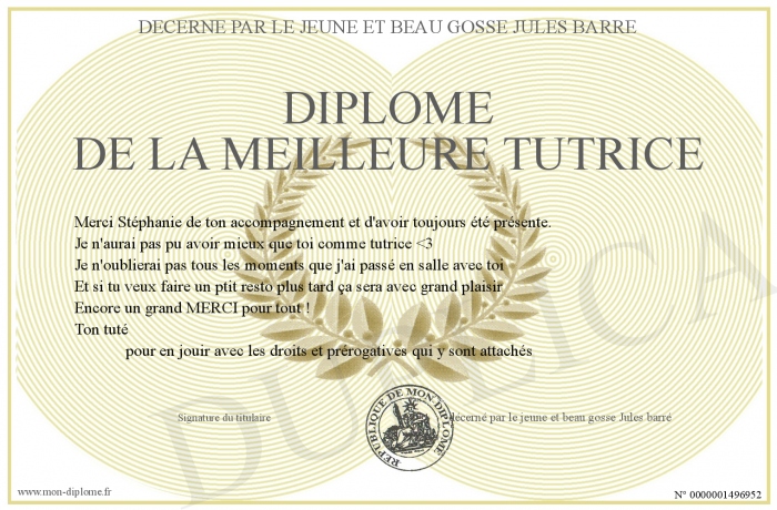 Envoyez par email votre Diplôme de la meilleure tutrice personalisé