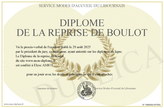Envoyez par email votre Diplôme de la reprise de boulot personalisé