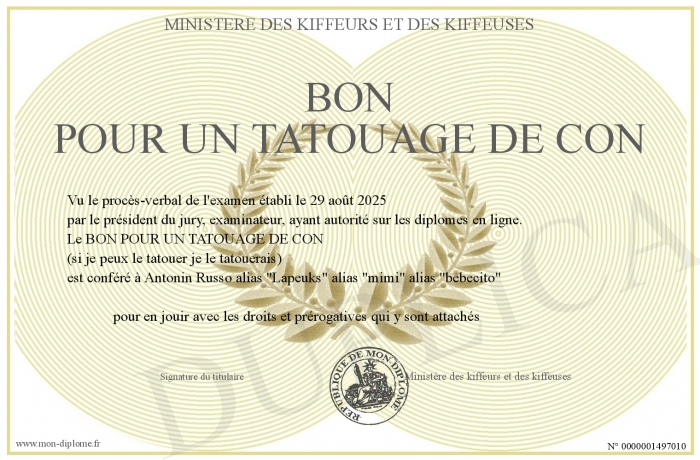 Envoyez par email votre BON POUR UN TATOUAGE DE CON personalisé