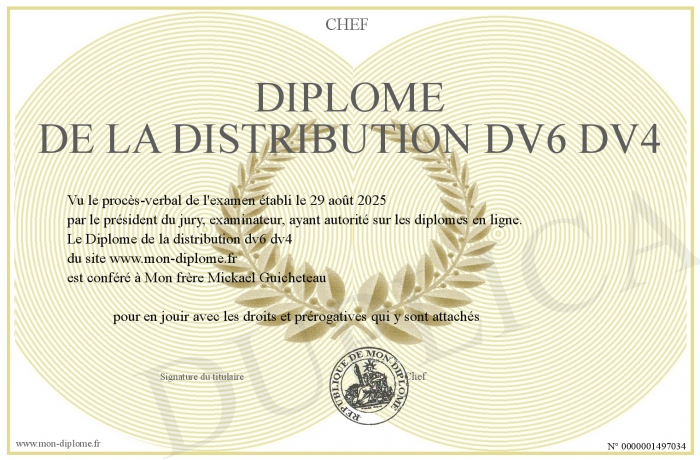 Envoyez par email votre Diplôme de la distribution dv6 dv4 personalisé
