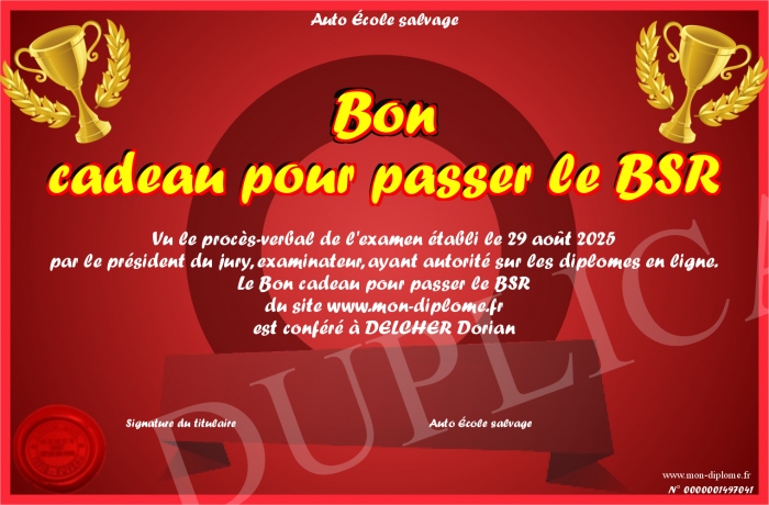 Envoyez par email votre Bon cadeau pour passer le BSR personalisé