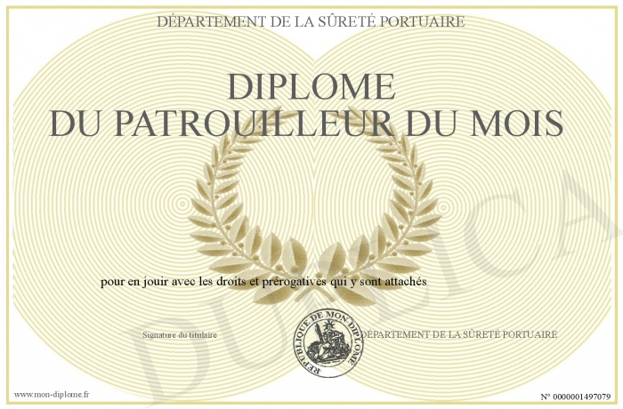Envoyez par email votre Diplôme du Patrouilleur du mois personalisé