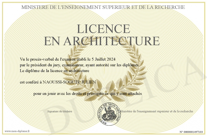 Envoyez par email votre LICENCE EN ARCHITECTURE personalisé