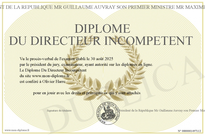 Envoyez par email votre Diplôme Du Directeur Incompétent personalisé