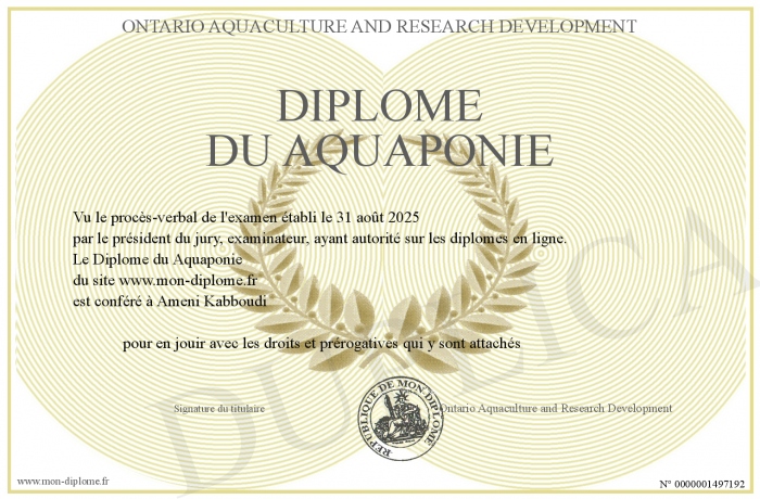 Envoyez par email votre Diplôme du Aquaponie personalisé