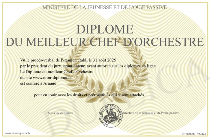 Envoyez par email votre Diplôme du meilleur Chef d'Orchestre personalisé