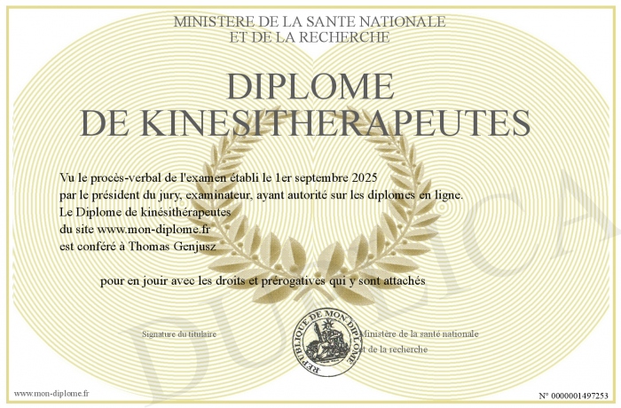 Envoyez par email votre Diplôme de kinésithérapeutes personalisé
