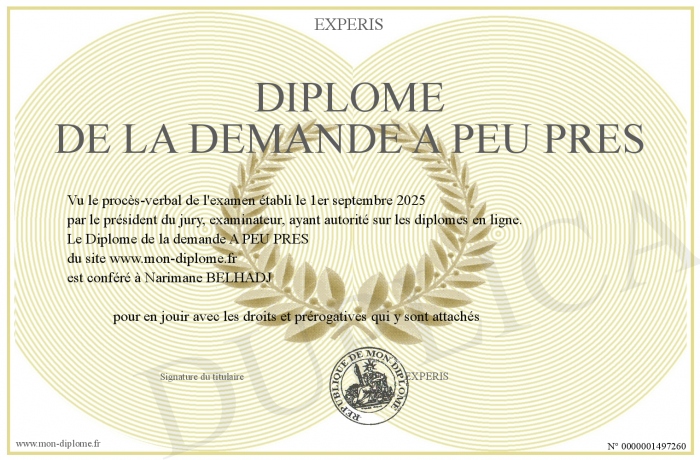 Envoyez par email votre Diplôme de la demande A PEU PRES personalisé