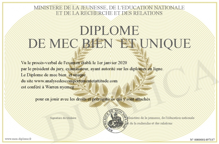Envoyez par email votre Diplôme de mec bien et unique personalisé