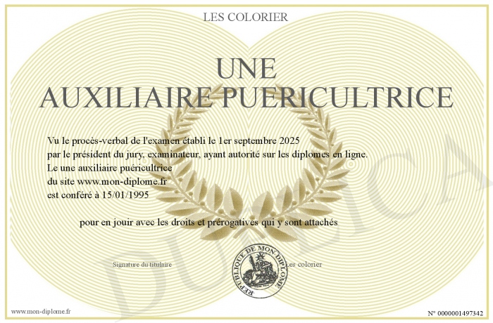 Envoyez par email votre une auxiliaire puéricultrice personalisé