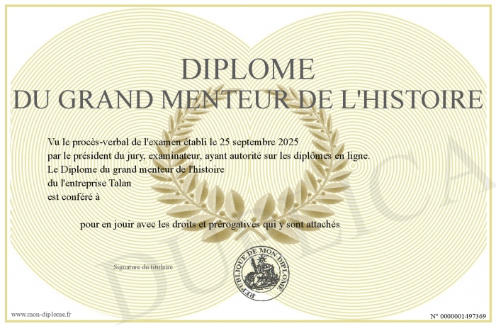 Envoyez par email votre Diplôme du grand menteur de l'histoire personalisé