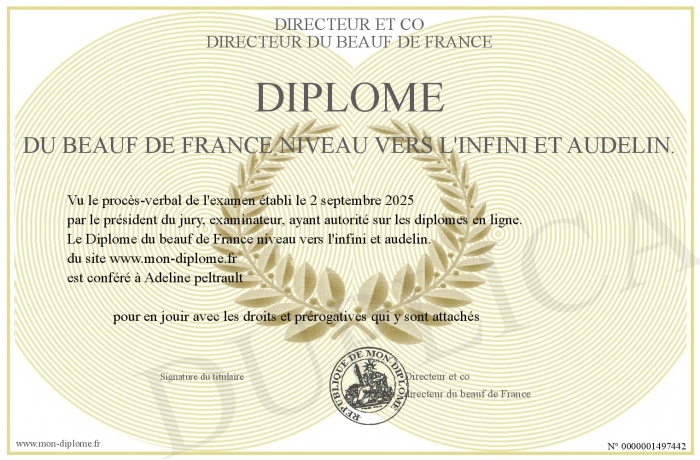 Envoyez par email votre Diplôme du beauf de France niveau vers l'infini et audelin. personalisé