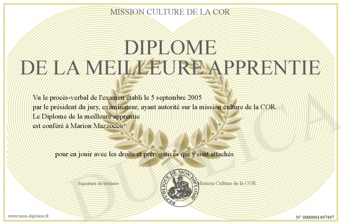 Envoyez par email votre Diplôme de la meilleure apprentie personalisé