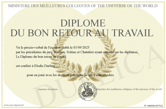Envoyez par email votre Diplôme du bon retour au travail personalisé