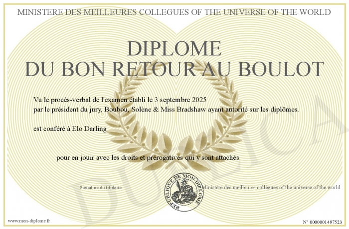 Envoyez par email votre Diplôme du bon retour au boulot personalisé