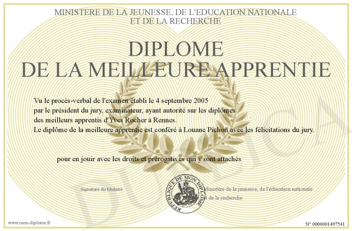 Envoyez par email votre Diplôme de la meilleure apprentie personalisé