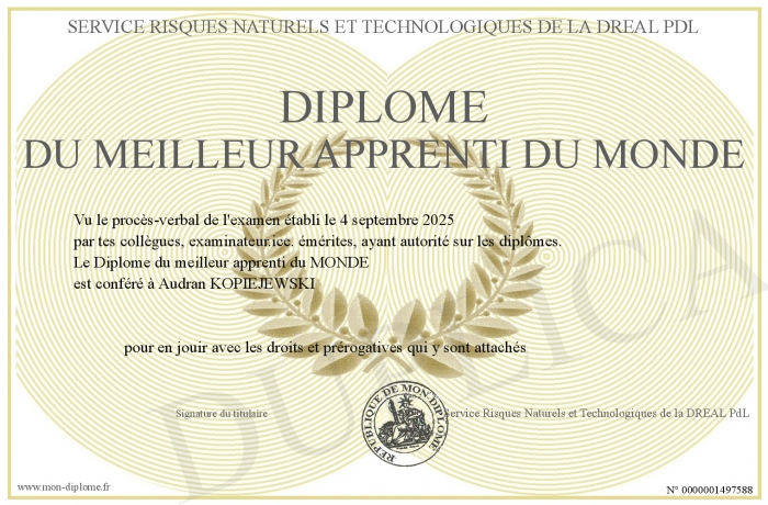 Envoyez par email votre Diplôme du meilleur apprenti du MONDE personalisé