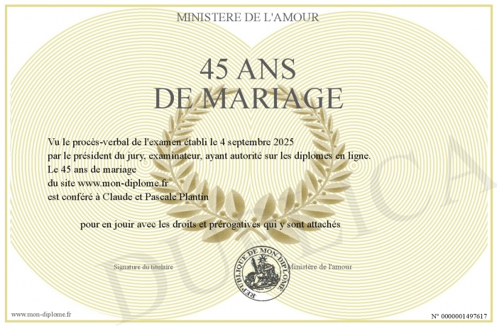 Envoyez par email votre 45 ans de mariage personalisé