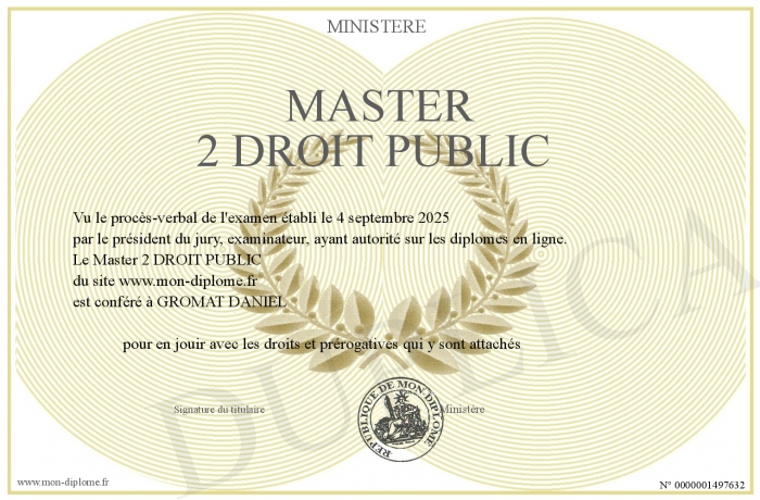 Envoyez par email votre Master 2 DROIT PUBLIC personalisé