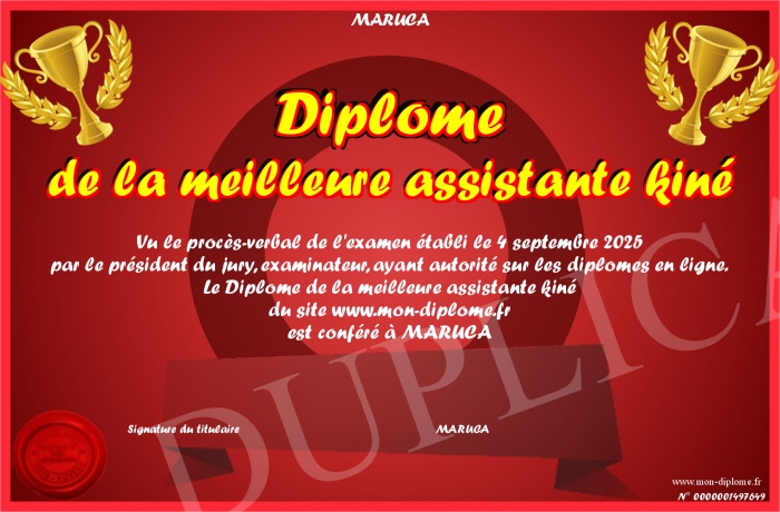 Envoyez par email votre Diplôme de la meilleure assistante kiné personalisé