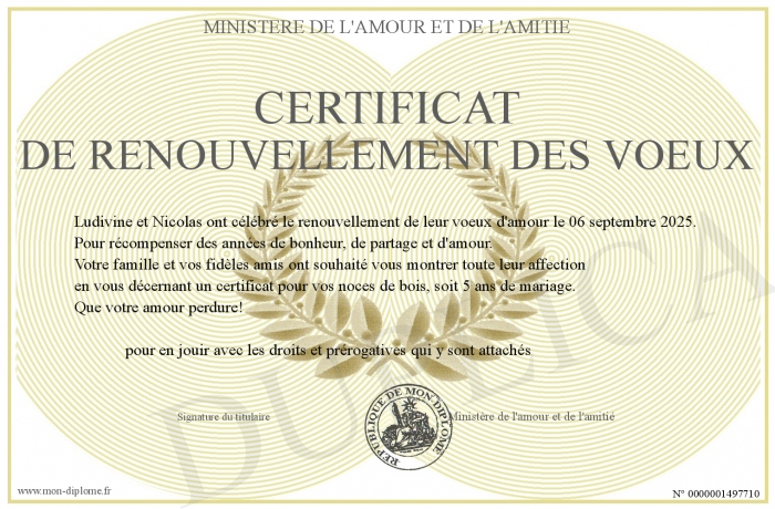 Envoyez par email votre Certificat de renouvellement des voeux personalisé