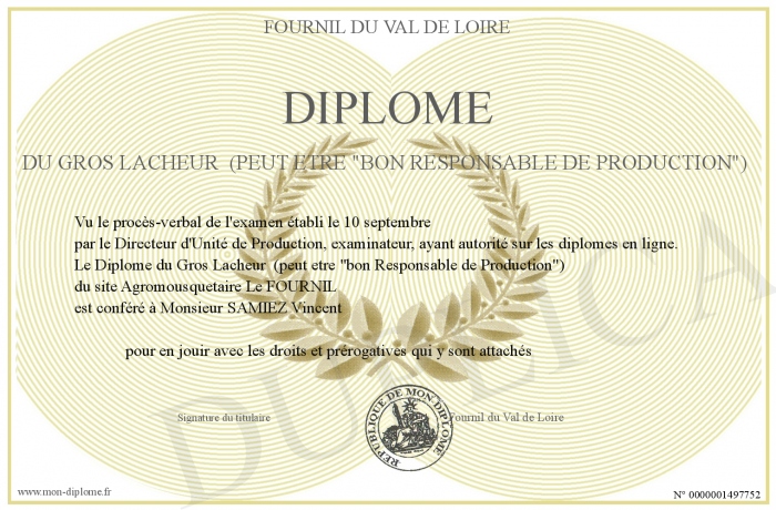 Envoyez par email votre Diplôme du Gros Lacheur (peut etre -bon Responsable de Production-) personalisé