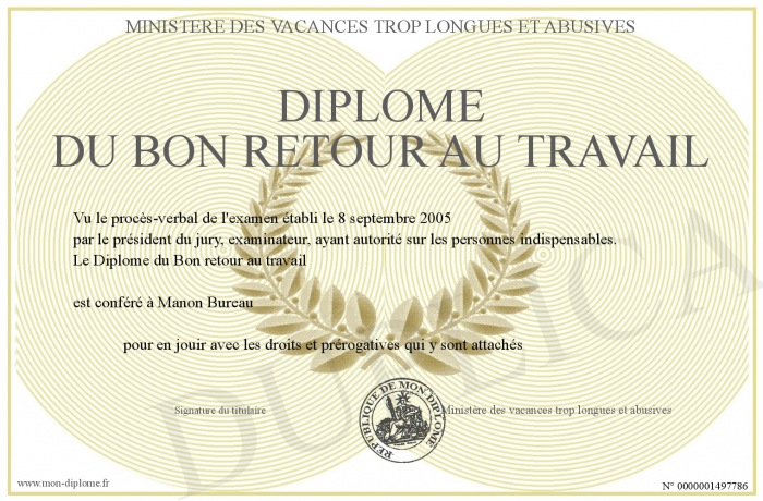 Envoyez par email votre Diplôme du Bon retour au travail personalisé