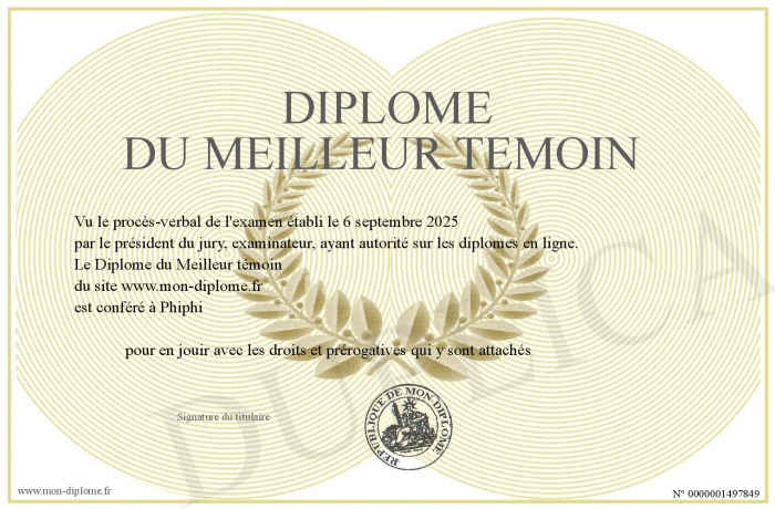 Envoyez par email votre Diplôme du Meilleur témoin personalisé