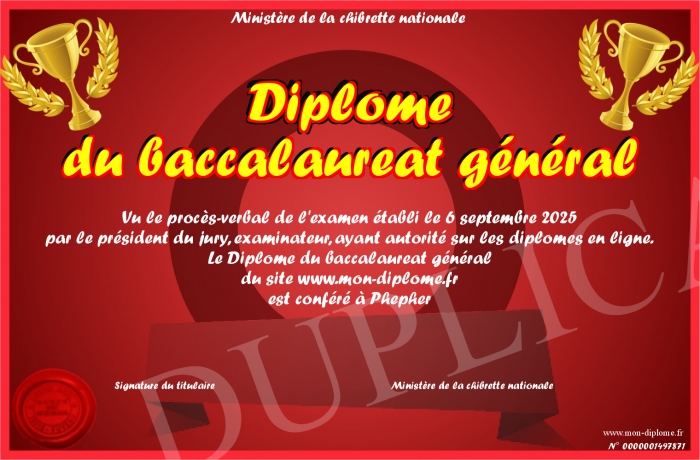 Envoyez par email votre Diplôme du baccalaureat général personalisé