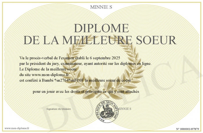 Envoyez par email votre Diplôme de la meilleure soeur personalisé