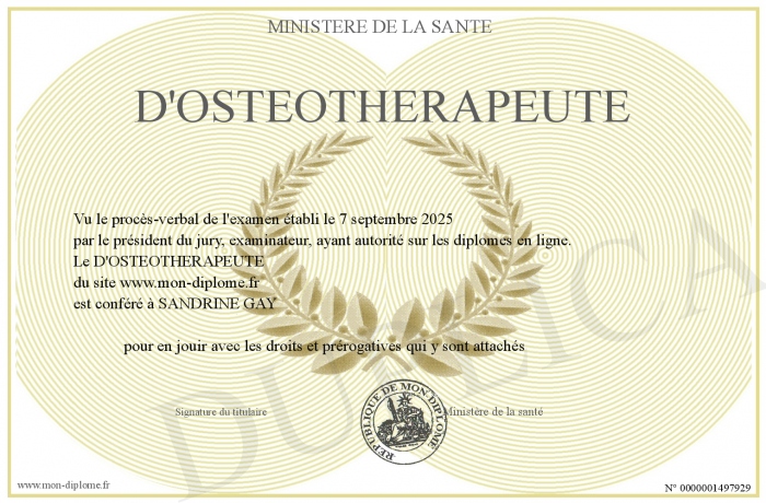 Envoyez par email votre D'OSTEOTHERAPEUTE personalisé