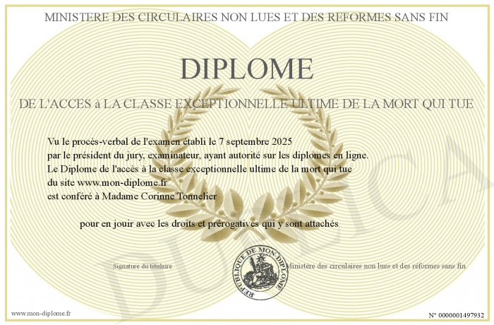 Envoyez par email votre Diplôme de l'accès à la classe exceptionnelle ultime de la mort qui tue personalisé