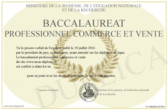 Envoyez par email votre baccalauréat professionnel commerce et vente personalisé