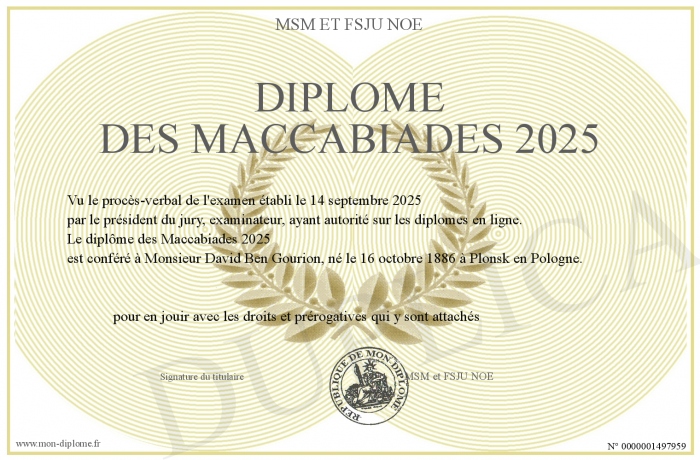 Envoyez par email votre Diplôme des Maccabiades 2025 personalisé