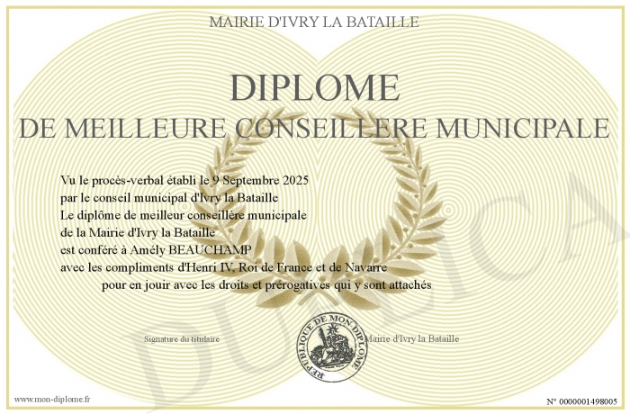 Envoyez par email votre Diplôme de meilleure conseillère municipale personalisé