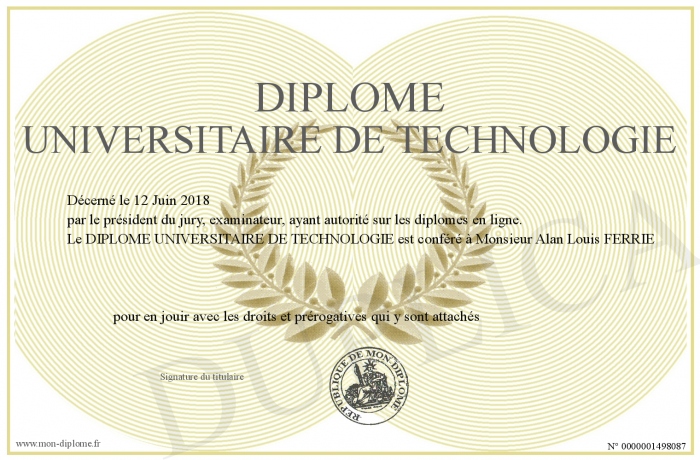 Envoyez par email votre DIPLOME UNIVERSITAIRE DE TECHNOLOGIE personalisé
