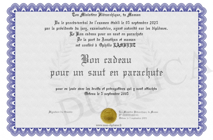 Envoyez par email votre Bon cadeau pour un saut en parachute personalisé