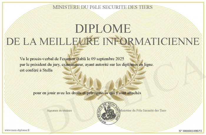 Envoyez par email votre Diplôme de la meilleure informaticienne personalisé