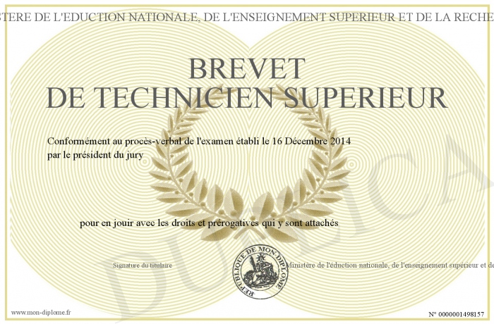 Envoyez par email votre brevet de technicien supérieur personalisé