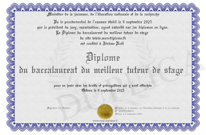 Envoyez par email votre Diplôme du baccalaureat du meilleur tuteur de stage personalisé