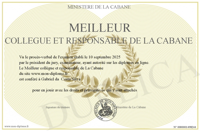Envoyez par email votre Meilleur collègue et responsable de La Cabane personalisé