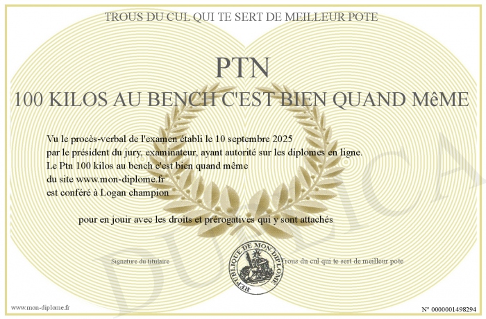 Envoyez par email votre Ptn 100 kilos au bench c'est bien quand même personalisé